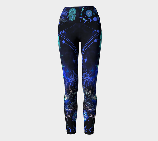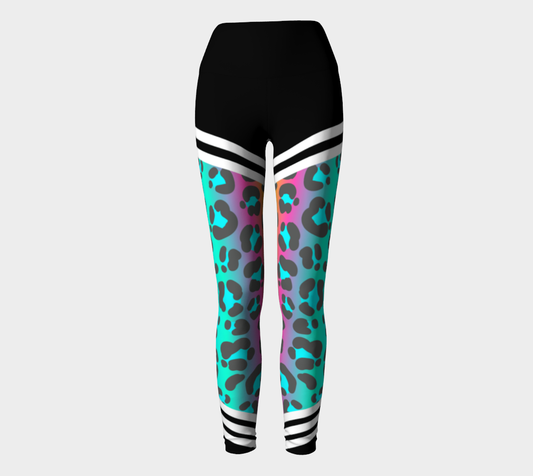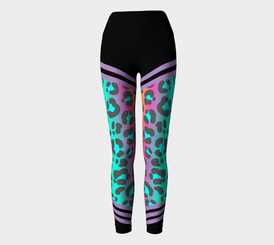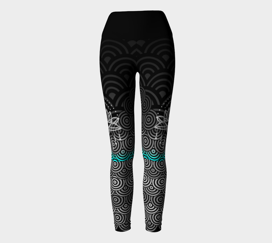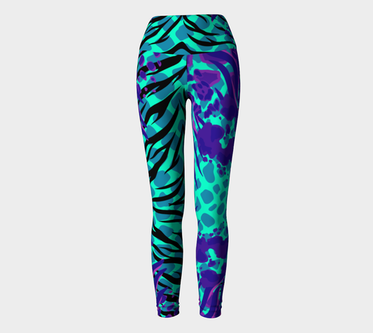 Luxury Super Wide Waist Eco Polyester Leggings Leopard Moon Aqua