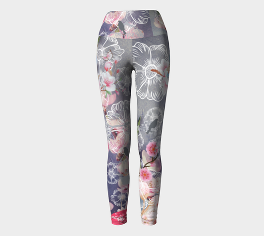 Luxury Super Wide Waist Eco Polyester Leggings Cherry blossom