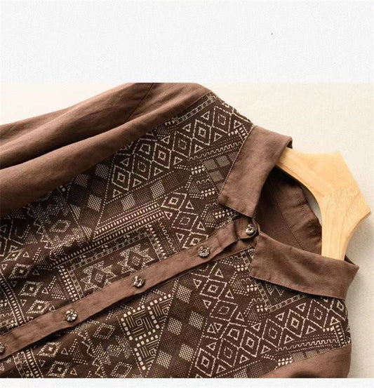 Ladies' No Birds Shirts Cotton Linen Vintage Patch